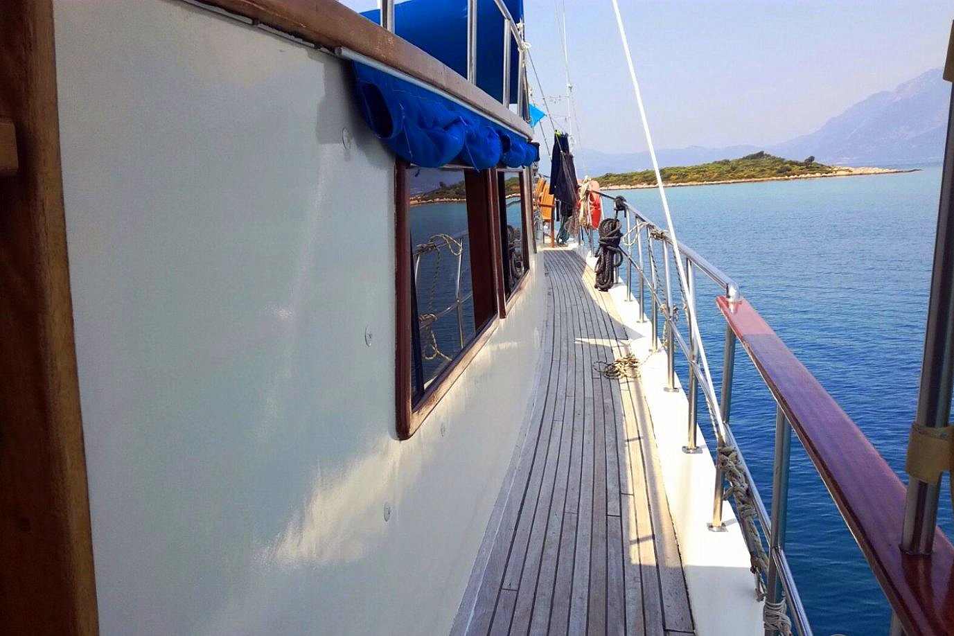 Die Standard Klasse Ketsch Yacht Topkapi 3 wurde im Jahre 1986 erbaut. Nach der Renovierung im 2014 nahm ihren aktuellen Stand. Mit einer Besatzung von 3 Menschen, diese 23 m lang und 5,50 m breit Gulet ist bereit, unseren Gäste für eine Blaue Reise zu begrüßen.