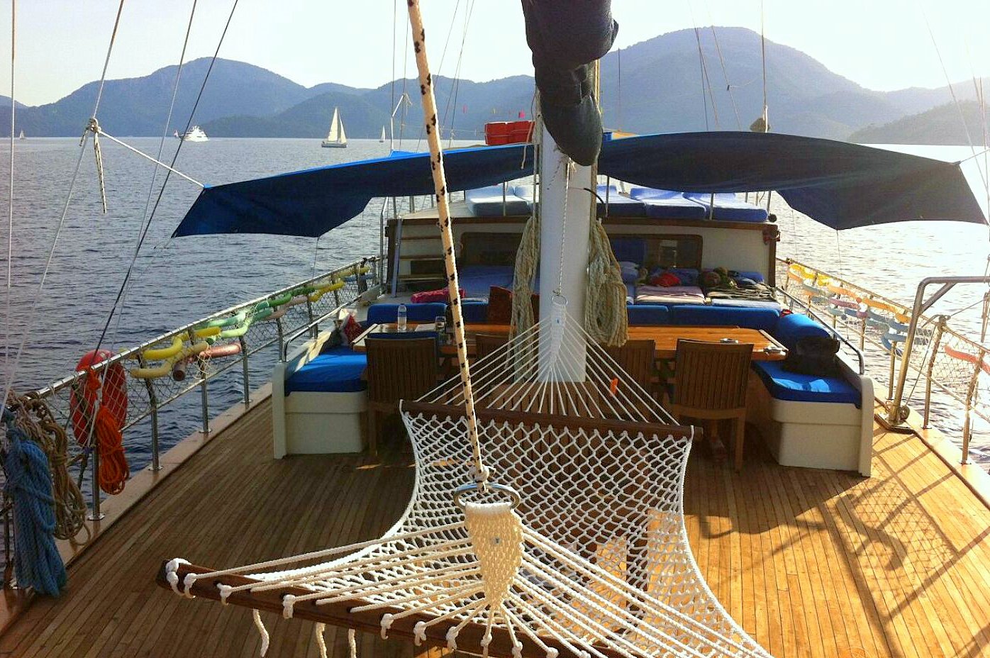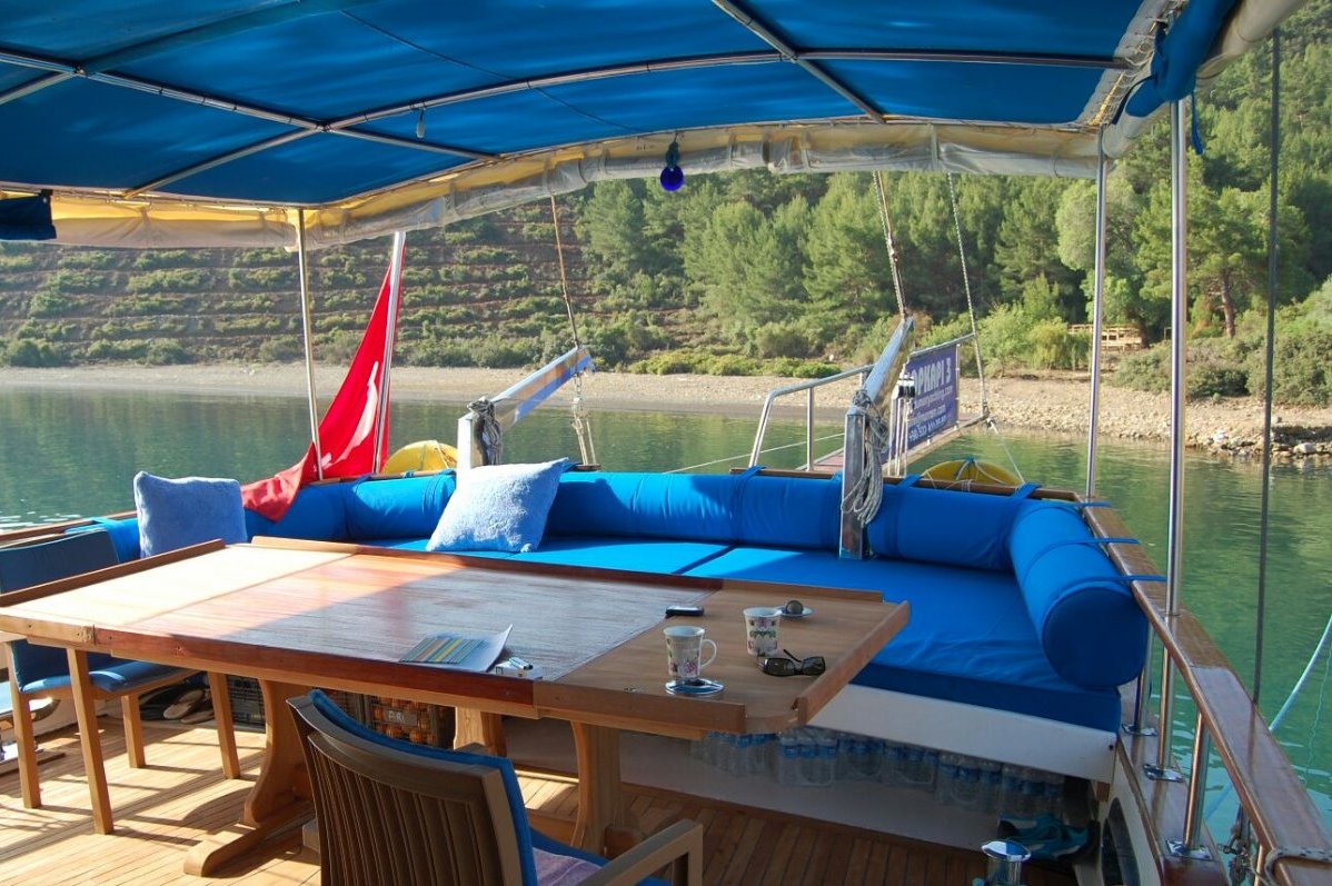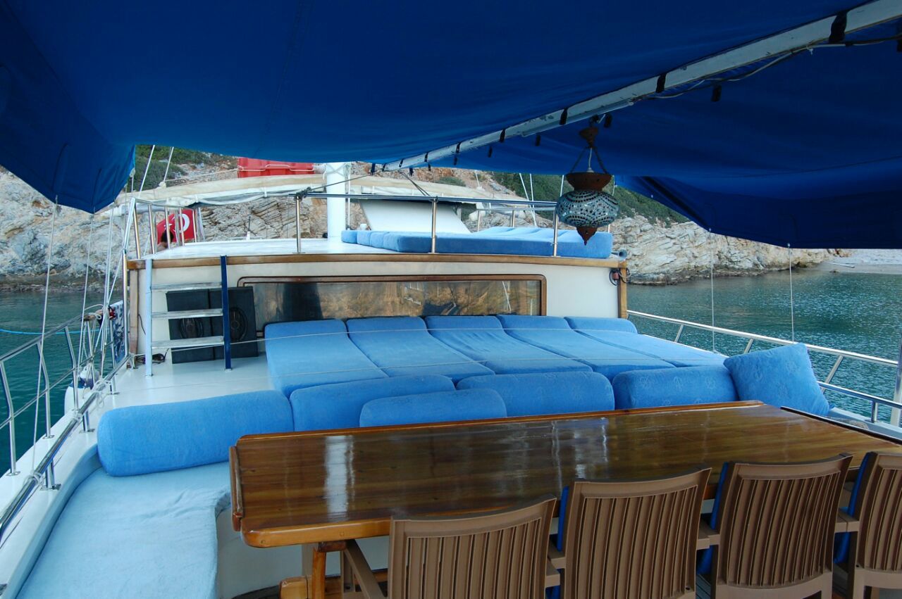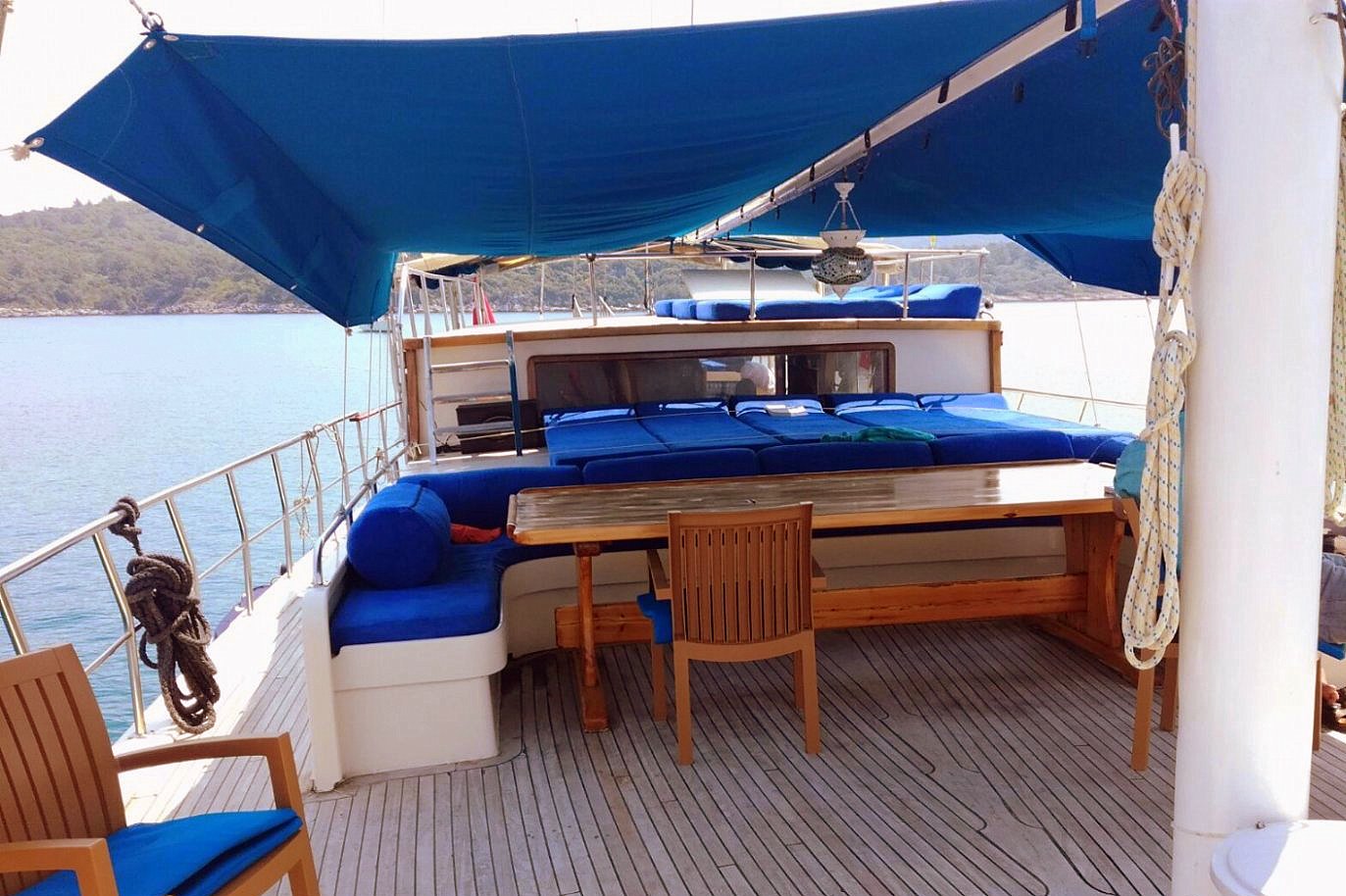 Für alle Gßste ausreichende u.a. Matten zum Sonnen, Stühle und Service Equipment sind vorhanden. Unsere Gulet läßt unseren Gästen Komfort, Luxus und Wohlstand erleben und gelangt. 9 Meilen pro Stunde.