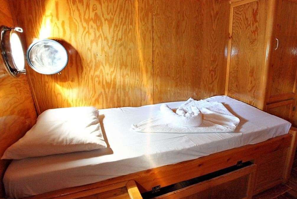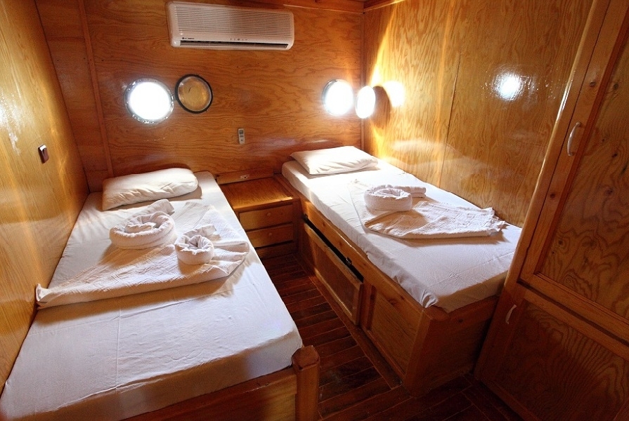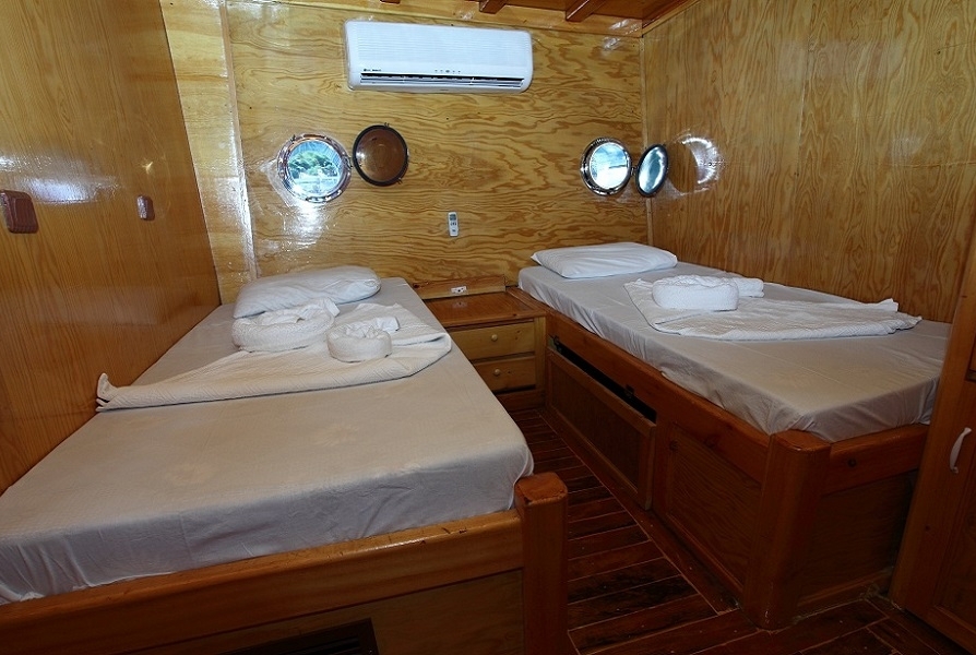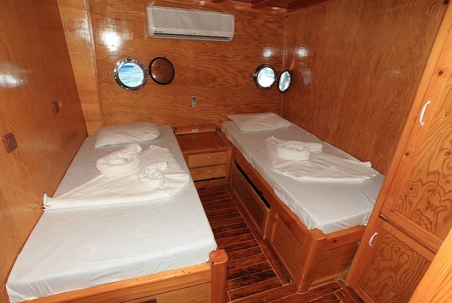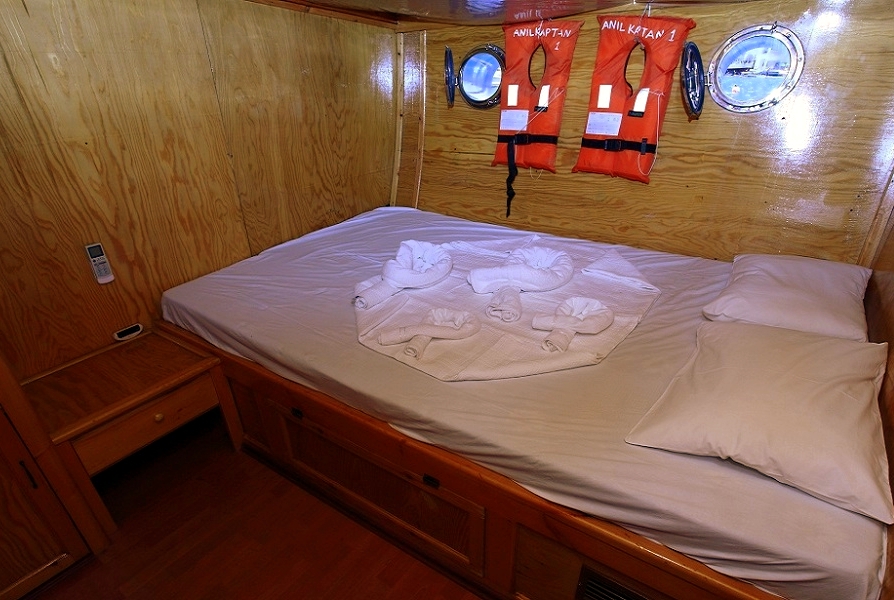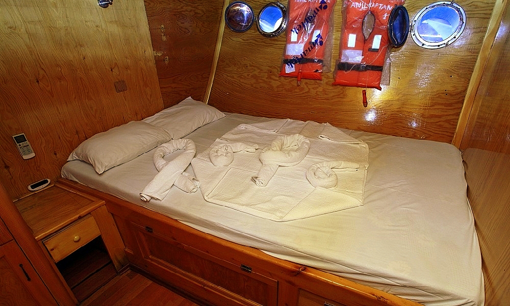 16 kişiye kadar olan guruplar için ideal olan yatımızda 8 kabin (6 Double + 2 Twin) vardır. Tüm kabinler klimalı olup, hepsinde özel ev tipi tuvalet ve duş bulunmaktadır. Ayrıca GPS, VHF ve diğer tüm gerekli seyir ve güvenlik ekipmanlarına sahiptir.