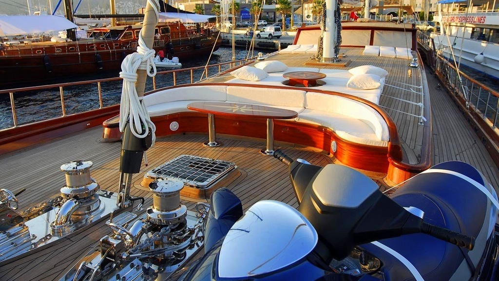 Tur boyunca misafirlerinin keyifli zaman geçirebilemesi için 100 Hp servis botu ile birlikte Ringo, Jetski, Windsurf, Şnorkel Ekipmanları, Olta Takımı, Su kayağı, Wakeboard ve Kano hizmetinizdedir. Ekstra su sporları seçenekleri konusunda tur öncesi satış temsicinizden, tur esnasında kaptanınızdan bilgi edinebilirsiniz.